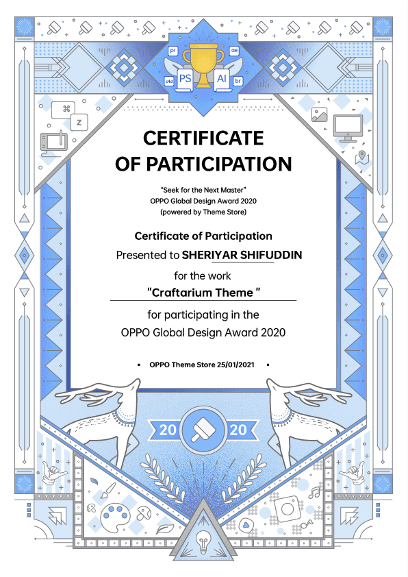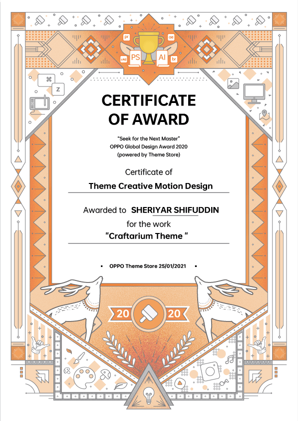 During a challenging period when I lost my job in Vietnam due to the impact of the COVID-19 pandemic in September 2020, I remained hopeful and utilized my time effectively. Coincidentally, the "OPPO Global Award 2020" was taking place at that time, and I decided to participate in the competition to create the best theme design for OPPO mobile. The competition featured top graphic and motion designers from around the world. Although I did not win the best theme award, I was thrilled to receive a award for the "Theme Creative Motion Designer" category.